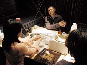 先週のGOODS JOCKEYに登場したのは 永田農法で育ったおいしいお米でした。 ![]() スタッフ一同、 たきたてのお米の香りがただようスタジオで お腹をすかせてそわそわしています。 いよいよ解禁! みんな食べてよし! ボジョレーヌーボーの発売開始イベントとは一味違い、 どちらかというと炊き出しの雰囲気さえ ただようスタジオです。 ![]() 塩を軽く手につけ、 にぎりはじめる人。 第2回の商品として取り上げられた オカカ7型をとりだしてきて、 おかかオニギリにする人。 思い思いに三角、丸、俵のオニギリをつくって ほおばりました。 ![]() おいしいモノを食べているときは 会話もはずみます。 収録中に登場した「吉川町のお米」で 結婚までしてしまった AOR西本のエピソードのこぼれ話。 「つきあっている最中、 レストランにも行かずに この米を食べたくて いつも家で食事をしてました。 この米とSKIPのタマゴ。 ちょっとあきたらおいしい漬け物。 これだけでもう充分ですよ。 でも糸井さんから教えてもらった うまいモノ情報を披露したり、 家に持って帰っていたせいで、 食通だと勘違いされてしまっているのが ちょっと困ったところです。 ホントはファーストフードで ぜんぜんいいタイプなのに‥‥」 おいしいモノには目がない アシスタントの柳井麻希さんは 「おいしいオニギリをにぎっている達人は ひとつのオニギリをつくるにあたって、 六回以上はにぎらないんです。 そうすることによってくずれないけど、 中がふわっとしている オニギリができるんですよ。」 と家庭的な一面も垣間見える情報を披露。 でもその傍らで番組スタッフに 「個人的に買いたいので、 よしかわ杜氏の里の連絡先を教えて!」と GOODS JOCKEYおきて破りの 交渉をしているところも。 そしてラジオの放送を聴いて いただいた方はご存知かと思うのですが、 darlingはずっと自分が食べる分の お米がなくならないか心配していました。 「今年も新米ができる直前の時期に このお米がなくなってしまって、 泣く泣く他のお米を食べてたんだよ。」 放送に登場してくださった よしかわ杜氏の里の山本さんから 「糸井さんの分はちゃんととっておきますから 大丈夫です」 と言われて、放送中はゴキゲンになっていましたが、 それでもやっぱり 「そうは言っても、 なくなっちゃったとしても 責められないじゃない。 ほんとなくなったら困るんだよ。」 と言い続けていました。 「家で食べるごはんがいちばんおいしい」という源は つくる人の愛情もありますが、 おいしいお米にもあるんだろうなぁ、 ということをつくづくと感じるスタジオでした!