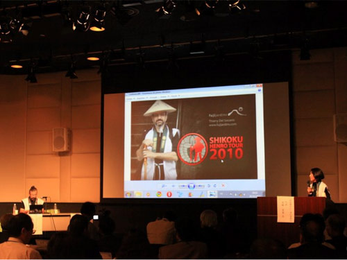 ![]() ▲フランス人による遍路体験講演。 2011年、フランス国立ギメ東洋美術館にて。 |