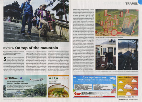 | 尾崎 | そうですね。 EUの大統領と会ったのが1月下旬で、 その直後の2月15日から5日間が クロードさんのスケジュールだったので 準備が大変でした。 でも、おかげさまで 『ZOOM JAPON』3月号に 「金刀比羅宮」や「こんぴら歌舞伎」、 5月号に「豊島」、 6月号に「しまなみ海道」の記事が 英語版(4万部)とフランス語版(7万部)に掲載され、 12ページに及ぶ四国のスポットが 英仏両国で紹介されたんです。 |