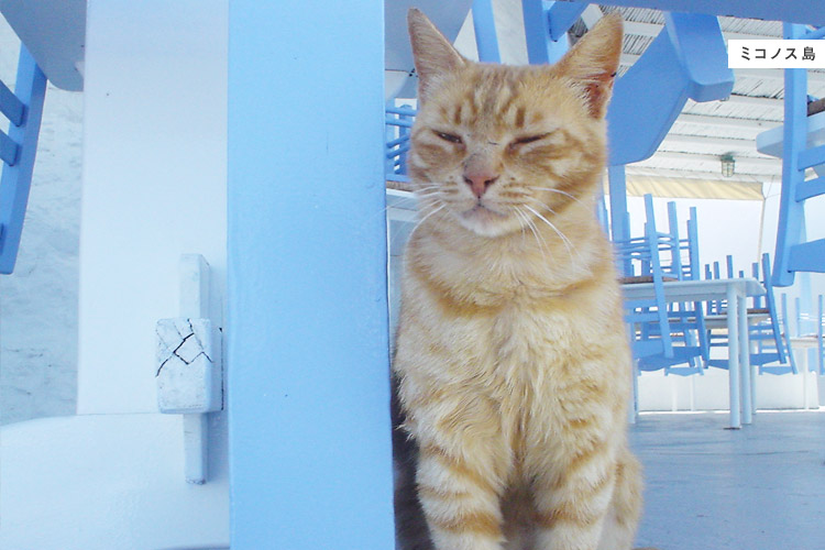 屋外で食事をする習慣は、野良猫にとっても好都合。