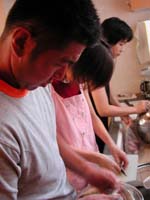 3人はもくもくと作業中。 野上トレーナーは アシスタントに徹してます。 いまライム絞り中。 「そのあとお醤油の分量はかってね!」 「はいっ!」 さすが体育会系、返事がいい。 ところで、じつは、こんかい、 野上トレーナーは“修業の旅”に出ることになり ストロングスを辞めることになったのです。 シェフは見捨てられたのか? 「いえ、新たに、僕よりキビシイ 池田さんという女性トレーナーが シェフさんのトレーニングを見ます。 ほんとに僕よりキビシイから 覚悟しててください」