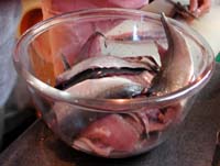がーん。おかずを考えながら スーパーに行くと、たいていお肉を買ってます。 ごくたまに、お刺し身、てくらいで。 そういう買い方、やめたほうがいいかも。 これから、毎食、交互になるようにします、 お魚と、肉。 香菜たっぷり! 鯵のタイ風マリネ、半分完成。