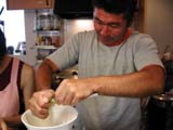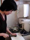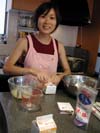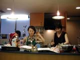 ストロングスより斎藤トレーナー登場。 仕事の合間をぬってきてくださいました。 キッチンはだんだん佳境に。 「なんグラム?」 「90グラムです」 「何人分?」 「18人分!」 「18グラム?」 「ちがうよ〜〜〜」 ふうむ、いつもは作っているほうなものだから わからなかったけど けっこう、混乱しているふうに見えるものですね。