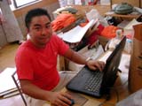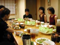お待たせしました! 先生がたはすでに到着していたのですが 材料の買いだし(シェフ&あやや)が手間取りまして、 中継開始が遅くなってしまいました。 すごい量です。車のトランクいっぱいだった。 18人分(だけど予備を入れて20人分)、 費用は約30000円でした。 では、本日の料理人をご紹介。