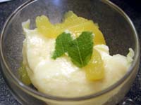☆ オレンジムース <材料> オレンジジュース…80cc 生クリーム…40cc 粉ゼラチン…2.5g 砂糖…10g コーンスターチ…小さじ1/2弱 オレンジリキュール…大さじ1 オレンジ…1/8カット4つ ハーブ…適宜 <作り方> 1)ゼラチンを、ゼラチンの量の 3倍の水で30分くらいふやかしておく。 2)1のゼラチンを電子レンジに 1分かけて、これを溶かす。 3)オレンジジュースに 2のゼラチンを入れる。 4)生クリームを8分立てにして、 砂糖を入れる。 そこへ4を数回にわけて 少しずつ混ぜる。 (完璧に混ぜ切らせない。 少々まだらな方が見た目がいい。) 6)グラスに流し入れて、 約1.5時間冷やすと プルプルムースの出来あがり。