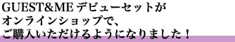 「あなたの心に残るおもてなし」 「あなたが恋人を待つ時の準備」 「GUEST & ME を使った感想」などの投稿、 お待ちしています。 guest@1101.com こちらまで、お送りくださいませ。 素敵なメールは、掲載させていただきたいと思います。 掲載されたかたには デビューセットを送らせていただきます。 メールには、住所・電話番号・氏名を明記してください。 |