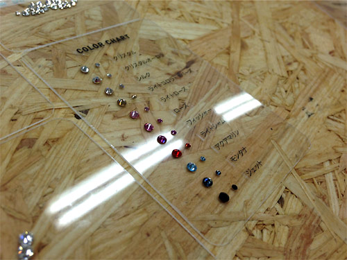 デザインがきまったら、次はラインストーンの色を決めます。