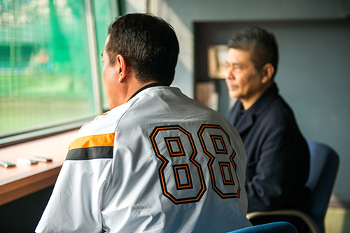 | 原 | ねぇ、まあ、なにが正しかったっていうのは、 ぼくにはわかりませんけれども、 私はそういう方法を取ったということですね。 それが、どういうふうに受け取られたかは これはもう、わかりませんけど‥‥。 あの次の日というのは、 東京ドームに場所を移しますから、 試合がなくて、練習日だったんですよ。 で、その練習日にですね、 その審判の方がね、 グランドに練習に来てました。 |