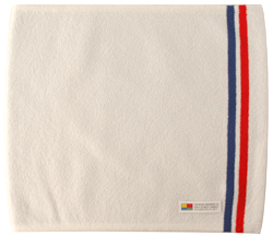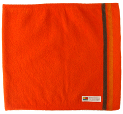 オレンジ地にグレーと山吹色のラインが入ったデザインです。