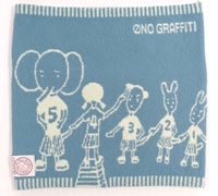 ![]() 「グラフィティ」 女の子が壁にゾウやウサギなどの動物の らくがきをしています。 うしろ側は、らくがきしている女の子を 反対面から映している構図になっているのも、 面白いですよね。 動物の番号と並んで、 女の子も「4」と番号が入ってるところも、 かわいいです! ちなみに、名前は「グラフィティ」ですが、 向かって右上のロゴは、 「NO GRAFFITI」です。 以上、「ほぼ日うれしいハラマキ」のデザイン11種類を 一気にご紹介してまいりましたっ!! いかがでしたか?? 今回も、ほんとーーーーーに、 どれにしようか迷っちゃいますよね。 それでは、気になるお値段も、発表いたします! 今回の11種類のデザインすべて、 F・S・XSサイズ 3400円 子供サイズ 3000円 です。 どうぞ、よろしくおねがいいたします。 さて、明日は、“素材”についてお知らせしますよ。 ハラマキストの方には、 すっかりおなじみになっている “のびのびタオリン”にくわえて、 今回は、新しい素材が登場します!! この新素材、ひと足早く、 サンプル版を試しに巻いた「ほぼ日」スタッフの間でも、 大好評なんです! くわしくは、また明日! 【おわびと訂正】 本日6月10日午前11時の更新で、 当初「12デザイン」と紹介しておりましたが、 デザインが確定していない商品を紹介しておりましたので、 現在、11のデザインのみご紹介しています。 あたらしいデザインが決定しましたら またお知らせいたしますね。 (2004-06-10 14時追記)