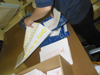 ハラマキ段ボールがどんどん積まれてきたよ〜ん。