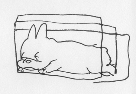 ぐるりとおなかに、犬が寝ている。 |