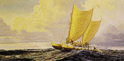 | ■Vol.6 “Eddie Would Go” Part3 アンクル・エディの死から 20年が過ぎたいまもなお、 ハワイの人々、そして サーフィンを愛する世界中の人々の間で アンクル・エディの存在は 伝説となって生き続けています。 アンクル・エディの死の数年後、 彼の友人の一人でビッグウェーブ・サーファーであり サーフボードのデザイナーでもある ジョージ・ダウニングが、 クイックシルバーというサーフィン・グループに エディ・アイカウの名を冠した サーフィンの大会をつくろうと提案しました。 エディの名にふさわしい 世界でもっとも高い波に挑戦する大会を つくりたいと思ったのです。 そうして “The Quicksilver In Memory of Eddie Aikau Big Wave Invitational” という大会が生まれました。 このイベントの会場はもちろん、アンクル・エディが ライフガードを務めたワイメア・ベイ。 ハワイの伝説のヒーローを尊敬する 世界中のサーファーたちが ワイメアに集まることになったのです。 毎年、イベントの始まりには 参加者全員がレイを首にかけ、湾の中央まで サーフボードを漕いでいきます。 そして、全員で手をつなぎ円をつくり アンクル・エディのために祈り、 それからレイをはずして円の中心に投げて 偉大なサーファーの魂に敬意を捧げます。 これが、“The Eddie”(サーファーたちは このイベントをこう呼ぶのです)の 伝統的なオープニング。 この大会は、絶え間なく20フィート (約6メートル)以上の波があるときでないと 行なえないため、たびたび開催が 見送られてしまうという、 世界でも珍しいサーフィン・イベントです。 ビッグウェーブ・シーズンと呼ばれるほど 高波の多いオアフ島ノースショアの冬は サーファーにとってとても貴重なサーフィン・スポット。 だから“The Eddie”の出場資格を得るような 世界のトップ・サーファーたちは、毎年冬の時期、 高い波を求めてノースショアに集まっています。 そして、今年こそ“The Eddie”が開催されるようにと 祈りながら待っているわけです。 “The Eddie”で勝つということは 多くのサーファーのなかでも 世界一高い波を乗りこなすという特別な能力を 持った者にだけ与えられる最高の栄誉なのです。 初めてこの大会が開かれた1986年。 第1回の優勝者はアンクル・エディの弟の アンクル・クライドでした。 そのときの、アイカウ・ファミリーの 喜びといったら大変なものでした。 さらに、アンクル・エディがかつて サーフィンを教えたハワイ人の若者の多くが、 いまこの大会に出場できるほど 立派なサーファーになっていることも、 アンクル・エディにとっては、 大きな喜びだったに違いありません。 彼の伝説は消えることはありません。 彼の肉体は消えてしまっても、 魂は私たちの中に生き続けているのです。 もしみなさんがハワイを訪れたなら、 それが事実だということをすぐに 感じることができるでしょう。 たとえば、ハワイで車を走らせれば バンパーに“Eddie Would Go”と書かれた ステッカーを貼っている車を そこらじゅうで見かけるはずです。 いつもそのステッカーを見つけるたび、 私は、ほかの人たちも私と同じように アンクル・エディを尊敬し、 愛してくれているんだと感じて 幸せな気持ちになります。 でもこれは、ハワイに限ったことではありません。 以前、東京の世田谷を歩いているとき、 サーファーらしい日本人の男の子たちが アンクル・エディの顔を背中にプリントした Tシャツを着ているのを見たのです。 そのとき私は、 思わず泣きそうになってしまいました。 こんなにも離れた外国で、 私のおじさんを知っている人たちがいる……。 つい先日、ハワイの父から突然の電話がありました。 私の父は、アンクル・エディと同じように 自分の時間のほとんどを海で過ごす人です。 5年前に退職した父は、 現在はカヌーを人々に教えることに一生懸命です。 彼からの電話の内容は、 ホクレアが次の航海でマウイに寄港する際の 歓迎のセレモニーに父が招待されたということ。 ハワイの画家、ハーブ・カネが描いたホクレア号。 私が、日本のホームページで アンクル・エディについて書いていると話すと 「お前は心に大切に思っていることを 多くの人に伝えようと頑張っている。 私はそれがとても嬉しいよ」と父は言いました。 その声はかすかに涙で震えているようでした。 さらに彼は、ホクレアが来年日本への来航を 計画していると教えてくれました。 しかも、その際にはもしかしたら 父もクルーとして参加するかもしれない、と。 父は子供のように興奮しているようでしたが 娘である私にとっては、 まったく不安がないというわけにはいきません。 それがとても厳しい航海になることは 誰もが知っているのです。 しかし、父にとっては夢をかなえる またとないチャンスだということもわかります。 父は、アンクル・エディが20年前に挑戦したことの 重さをよくわかっているのです。 そして父は私に聞きました。 「もし、カヌー