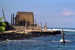 | ■Vol.49 ハワイの宗教 特殊なヘイアウ、プウホヌア ハワイには様々なヘイアウがあって、 それぞれに違う神が祀られていました。 その中でひとつご紹介したいのは、 プウホヌアというヘイアウ。 これは、その場所に逃げ込めば すべてのものから守られる、という 神の聖域としてつくられた特別なヘイアウでした。 絶えず戦争を繰り返している王たちが 平和的に会談をしなければいけないときにも、 この場所が使われました。 普段は殺し合っている間柄でも、ここでは静かに 話し合いをしなければいけないと定められていました。 このヘイアウで争うことは決して許されなかったのです。 それぞれの神のために様々な ヘイアウが建てられていましたが、 プウホヌアは特別な場所で、 ここだけで4人の主たる神に祈ることもできました。 また、プウホヌアはカフナや王族の 修行の場でもありました。 犯罪者がプウホヌアに逃げ込めば、 すべての罰から逃れることができました。 しかもそれだけでなく、犯罪者はその汚れた魂を ここで清めることもできました。 どんな犯罪を犯しても、ここで祈り悔い改めれば 神の許しがもらえるという非常に特別な場所だったのです。 聖なるプウホヌアでの争いごとは絶対の禁であり、 ここにいればどんな犯罪者も 追手を逃れて安全に暮らせたわけです。 しかし、ここから一歩外に出れば、 復讐に遭うことも度々ありました。 たとえば、夫が妻を殺してここに逃げ込み 神に許しを請うと、罪は償われ魂は清められます。 けれど、外に出ればいつ妻の家族に殺されるかもしれない。 ハワイでは復讐は法律で許されていました。 でも、一生ここを出なければ助かるとはいえ、 人々はやはり外の世界に出たくなるものです。 それに、かつてのハワイの思想では、 一番避けるべきことは死よりも、魂の汚れでした。 その頃の人々は魂の存在を信じていたので、 殺されてしまうことより、 魂が汚れたまま彷徨ってしまうことのほうが ずっと恐ろしいと皆思っていました。 もっとも代表的なプウホヌアはハワイ島にある プウホヌア・オ・ホーナウナウです。 これは非常に広く182エーカー(73.7ヘクタール)の 公園になっており、1961年には ナショナル・パークに指定されました。 ビジターがハワイの壮大な遺産を その目で見ることができる数少ない場所です。 この公園には、草で作られた伝統的なハワイの家や、 昔の建物、寺院の祭壇、王族の養殖用の池、 ソリの競技場、村のレプリカなどもあります。 プウホヌアに隣接して、ケアヴェという王族の寺と墓地、 いくつかの草の建物などもあります。 ケアヴェはこの土地を治めていた力のある王で カメハメハの先祖にあたります。 ![]() ハワイ島にあるプウホヌア・オ・ホーナウナウの一部。 この場所は、長い年月の間に すっかり朽ち果てていたのですが、 歴史家や科学者、考古学者たちが調査を続け 再現に尽くしたので、400年前と同じ姿で蘇りました。 ケアヴェの土地とプウホヌアを隔てている 巨大な壁は、訪れた人々を圧倒します。 その壁は大きな石をひとつひとつ 人間の手によって組み上げたもので、 高さが10フィート(約3メートル)、 厚さが17フィート(約5.2メートル)、 長さは1000フィート(約300メートル)にも及びます。 古いハワイに関心がある方は、 ぜひハワイ島のプウホヌアを訪れてみて下さい。 本当の古代のハワイに触れ、 その壮大な歴史にきっと感動することと思います。 壁の中に入った瞬間、時の流れを超え、 古の人々の息吹を肌で感じていただけるはずです。 |