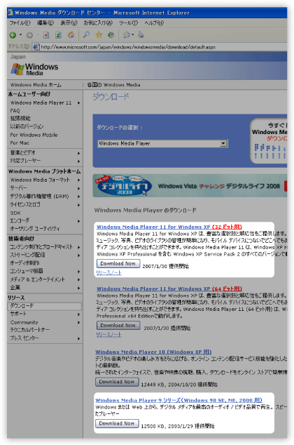 WindowsMediaPlayerのダウンロード |