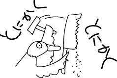 | 第17回 内装その4―壁がシマシマ!? 毎度ご来店ありがとうございます。 早いもので今年も、というか「今世紀」も 残すところあと4ヶ月をきりました。 26 two-sixは世紀を越えることができるのか!? さてそんな今世紀最後の年が明けたころのお話です。 あれだけ騒いだおかげで「Y2K問題」は 大きな事故を起こさずに済みましたね。 しかしわたしたちには起きてしまったのです。 ああ、今思い出してもどきどきする。 昨年の12月いっぱいで ひとまずバイトを辞めていたわたしは、 シロウト棟梁ゴチョウの休みの日を すべてじぶんたちのものとし、 内装の続きをする日程を組みました。 忘れもしない1月8日、事件は現場で起きました。 その日もゴチョウのほかに“意外な助っ人”シカちゃんも 参加してくれる予定になっていました。 オオタケが、バイトの都合上、 毎回内装工事に参加できるわけではないことを思うと、 彼女は心強い味方でした。 その日わたしは彼らより先にジャンクヤードに到着し、 シャッターを開けました。 およそ2週間もの間、みんなの都合が合わなかったため 締め切りにしていた店内には 塗料のにおいがたちこめています。 シャッターを全開にして作業をするのは 「本来控えめな」わたしにはためらわれ、 下の部分7〜80cmほどだけ開けて、 みんなの到着を待っていました。 ホットコーヒーの缶を開けて一息ついたとき、 ソレは目に飛び込んで来ました。 !!! か、壁がシマシマ。 年末にあれだけきっちりと貼り込んでおいた「壁板」が 見事に縮んで、もとの白壁がまるだしなのです。 薄茶と白色のシマシマ模様。 その白色部分の「すき間」はゆうに1cmほどありました。 あとで聞いたところによると、未製材の木材はふつう、 乾燥させてから使用するそうです。 言われてみればそうでしょうとも。 しかし知らなかったのです。 みなさまも今後なにかの役に立つかもしれないので、 どうか覚えておいてくださいまし。 未製材の材木は、ものすごく縮みます。 しかも今回のわたしたちのように、 塗料で十分に水分を含ませたのちに、 乾燥のはげしい冬に放置したなら効果てきめん。 その時わたしのアタマの中を駆けめぐったことばは、 ぜ・ん・ぶ・や・り・な・お・し。 本当? すべてはがしてはじめから貼り直すしか手だてはないのか? シマシマ模様の壁に片手をついたまま立ちつくすこと5分。 今日は午前中に用事がある、と言っていたゴチョウが 到着するのは昼過ぎになるでしょう。 どうするべきなのか誰か教えて。 そこへシカちゃんがやってきました。 彼女はあろうことか、まさかの事態にボーゼンとしている わたしを見て、文字通り「爆笑」したのでした。 おうおう、なにがそんなに面白い? 「だって、そんなにボーゼンとしてる人を、 こんなに間近で見たの初めてなんだもん」。 ああ、そう。 そして彼女は強かった。 「いいじゃん、また貼ればー」 と言うやいなや上着を脱ぎ、めりめりと音を立てて 長さ5cmの釘を抜き始めたのでした。 シカちゃん、あんたって人は。 数時間後、2人ですべての壁をはがし、 そしてある程度のところまで再度貼り込んだところで 昼食をとることにしました。 近くの店で食事を済ませて店に戻ると、 わたしたちのいぬ間に到着した棟梁ゴチョウが 黙って残りの壁を貼り込んでいてくれました。 わたしが興奮ぎみに 「えらいことになっててさー」 と今日の顛末を話して聞かせると、思いのほかあっさり 「そうなるかもしれないとは思っていた」 などと言う。 なんだい、あわてたのはわたしだけかい。 ![]() しかし、材木に関してはこれだけではありませんでした。 木というものは年輪がありまして、 古い木ほど太くなりますね。 ということは太い木はそれだけ貴重なわけです。 つまり、高価である。 そんなこともちょっと考えれば分かろうはずなんですが、 まったくアタマに浮かべないままお願いしたところ、 材木問屋さんはわたしたちが出せる金額に合わせるために、 なにも言わずにある判断をされたようでした。 幅の大きい材木に関しては、 2枚もしくはそれ以上の「いかだ」をつくって使うべし。 (たとえば天板1枚で発注したところを、 横に同じ長さの板を並べ、金具でつなげろ、ってことです) 壁用の厚さの薄いものは、 たまたま在庫(?)があったのか、 わたしたちが発注したとおり、 幅30cmのものが来たのですが、 棚用にと考えていた厚さ2〜3cmのものは どれも「いかだ」にするのを前提にして到着しました。 「ぎょえ〜、そんなことしてたら 開店予定日までに間に合わない〜」 わたしたちは全員真っ青になりました。 しかし、あせったところでここに別の板はないのです。 仕方がないので、それらの板をつなげるために 「一文字金具」を購入し、ひたすら「いかだづくり」です。 はじめは金具についてきたネジを ひとつひとつしめていたのですが、 とてもじゃないが、手間がかかりすぎるということで、 棟梁ゴチョウの指示により、 