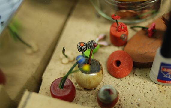 革とトンボ玉とステッチ。