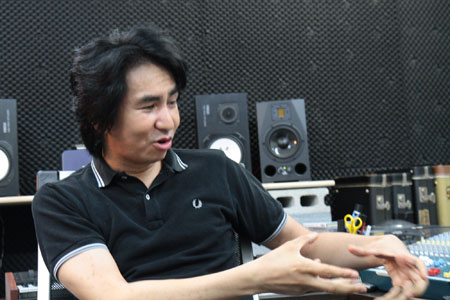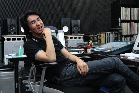 | 田島 | うん、俺にとってもはじめてのスタイルでした。 ワンマンバンドショウって感じかな? でもね、いま、俺だけじゃなくてきっと 世界中にそういう人があらわれはじめてるんですよ。 オリジナル・ラブとしては ずいぶん前から構想はあったんだけど、 そういうやり方で、今年はやってみようと思ってさ。 |