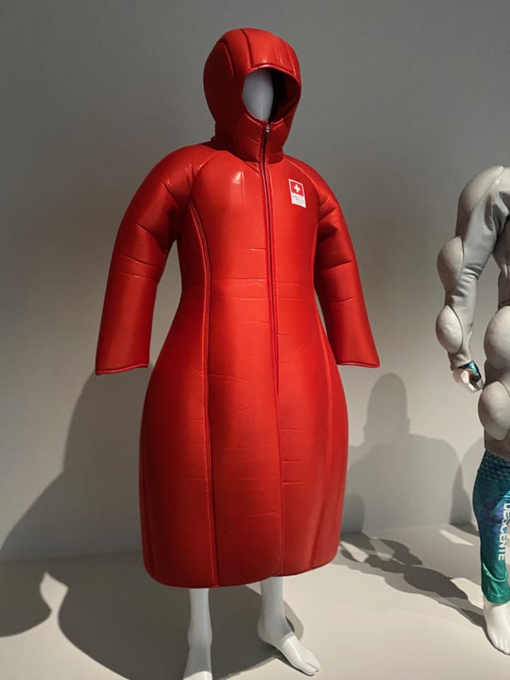 「コクーン」 ソルトレイクシティオリンピック・サプライウェア 2002年(オリンピックの試合前に、 ひとり集中するための服として作られた「コクーン」 マイナスイオンが出て、音楽を聴くことができるそうです。)