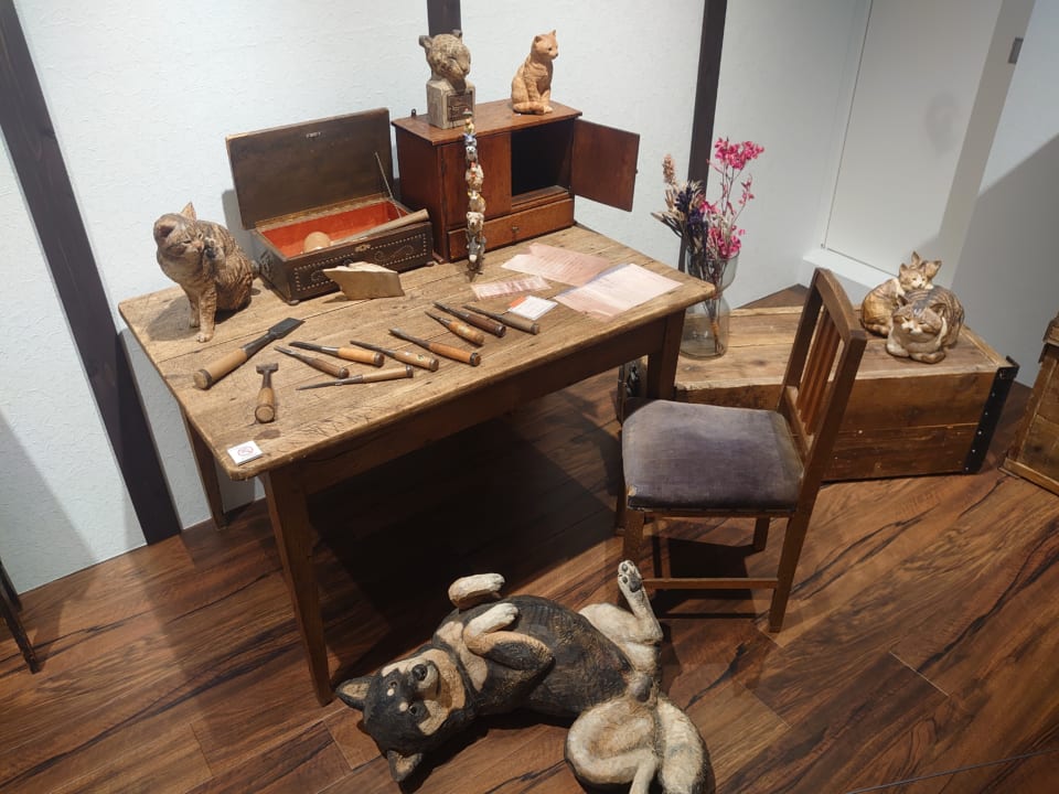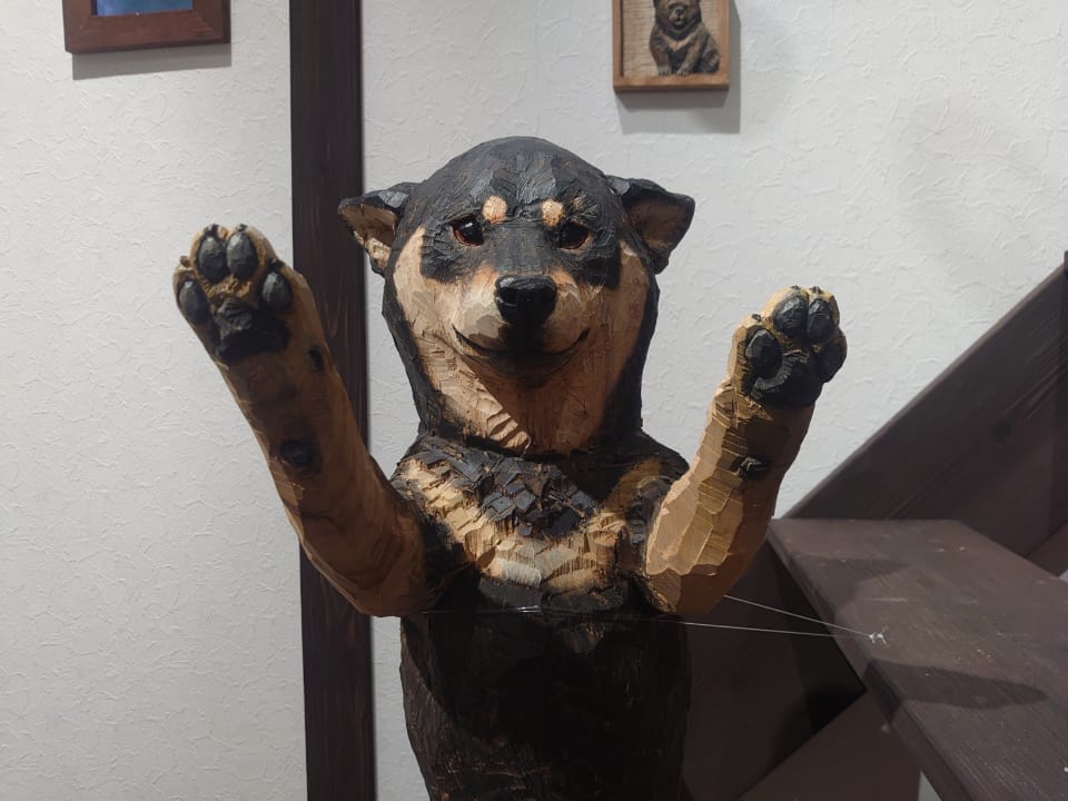 「はしもとみお」さんの彫刻は楠を使って