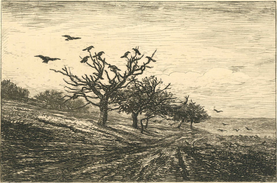シャルル゠フランソワ・ドービニー(1817‒1878) 《カラスのいる木》 1867年 エッチング/紙 21.7×29.9 cm 個人蔵