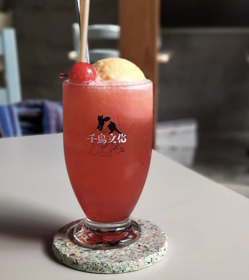 北加賀屋のカフェ『千鳥文化』さんの、ざくろのクリームソーダが美味しKawaii!