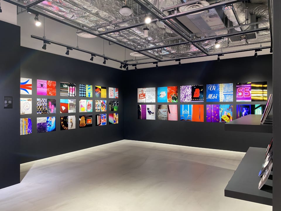 作品が壁一面に広がっています。