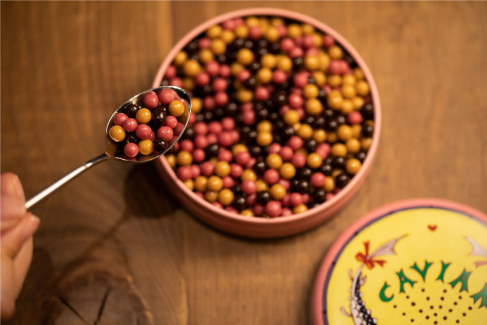 つぶつぶしたチョコレートのキャビアは、