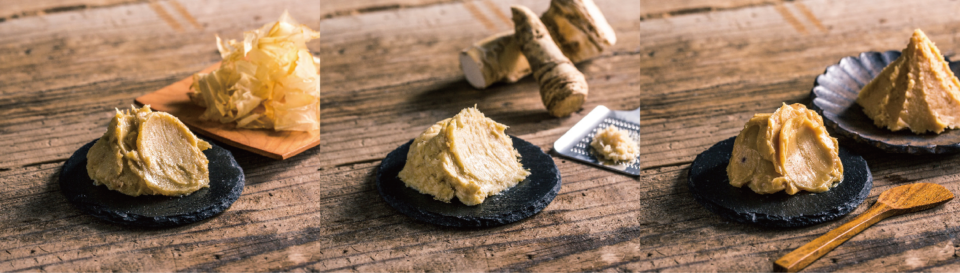 ▲(左から)鮭ぶし、山わさび、みそ