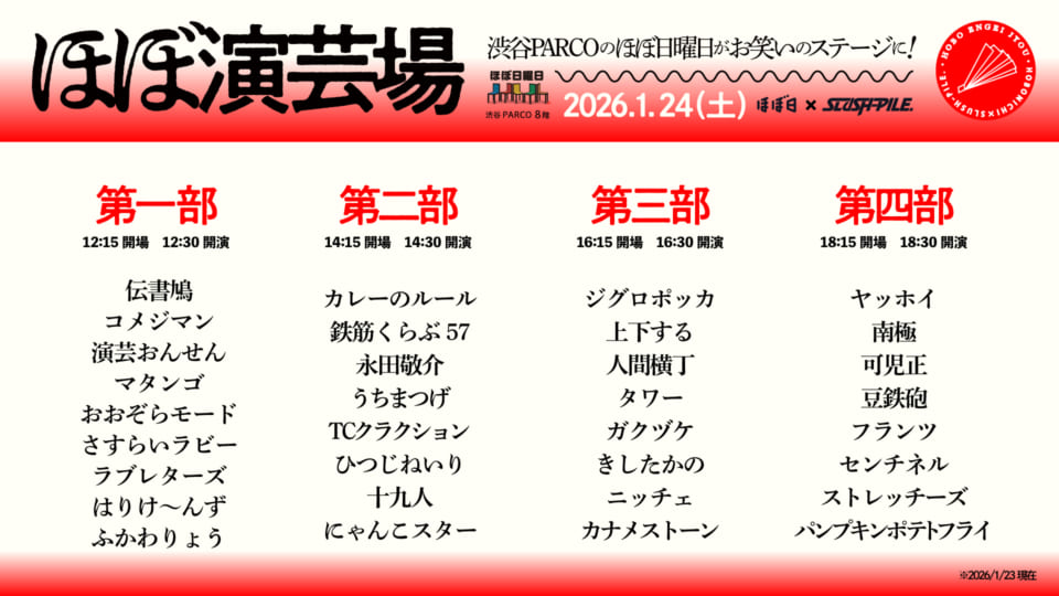 | 備考 | 公演時間 ①12:30~ ②14:30~ ③16:30~ ④18:30~ |