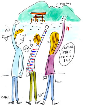 ●●●●●●●●●●●●●●●●●●●●●●●● 文中にあるように、 台風の直撃を食らった厳島神社。 現在、回廊の復旧作業を行っていて、 なかからの拝観ができるようになるのは 10月ごろになる予定だそうです。 「海の中にあるって、リスク高すぎよね」と フランソワーズさんは書いてますが、 ほんとうにそのとおりだと思いました。 また来週。 イラスト:さとうみどり |