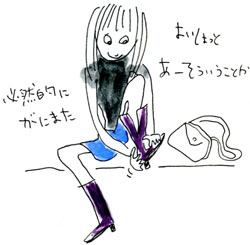 あけましておめでとうございます! やっと寒くなってきましたね わたしは夏より冬が好きなの! その理由は「おしゃれ」が楽しいから♪ 夏より冬のほうが「おしゃれ」できるって思いません? マフラー、手袋、帽子、コートそして 「ブーツ」!! 「ブーツ」はここ数年ずっと流行し続けていますが わたしも3足持っています。 黒と茶とファーのついたもの。 その日のファッションに合わせて楽しんでいます。 こんなとき「女に生まれて良かった♪」って 思うんですよね〜。 わかるでしょ? 「ブーツ」の魅力はファッション性だけじゃありません。 まず、温かいよねーー。 それはあたりまえ。 そんなあたりまえのことではなく わたしが「ブーツ」にギョッとするほどの 魅力を発見したのは実は去年の年末、 つい最近のことでした。 年末といえば「忘年会」ですが 座敷で行われることって多いですよね。 となると、必然的に靴を脱ぐわけですが こんなとき、女性なら一度は経験あるでしょ? 「ブーツ履いてきて失敗しちゃった」ってこと。 例えば、脱ごうと引っ張ったらタイツのつま先が びよよ〜んって伸びたり 片方脱ぐときこけそうになったり 座らないと脱げなかったり 下駄箱に入らなかったり 自立して妙に目立ったり。 ねっ! その「忘年会」でも きれいな女性が「ブーツ」を脱ぐ瞬間を 何気なく見ていました。 すると、どうでしょう! そのきれいな女性の「ブーツ」を脱ぐ姿がなんと! 「おやじ」だったのです!! わかる? まず、一段高くなっている座敷に腰掛けて 「ブーツ」のファスナーを下ろし 右手で左足の「ブーツ」を前方向に引き、脱いだわけ。 あちゃちゃ‥‥。 その時思いました。 「ブーツ」を脱ぐときは 左手で左足、右手で右足を 後ろ方向に引っ張って脱がなければ 脱ぐ姿が女じゃなくなるのよ!! こりゃあ、すごい発見だ! でも、それと同時に このきれいな女性の意外性というものに ノックアウトされていたの、わたし。 だって、本当にきれいな人なのよ! そんな人が見せる一瞬の「おやじ」。 気が付くと好きになっていました。 「ブーツ」ってそんな「危うさ」を秘めた靴なのよ! 女に「隙」をつくるの、それも無意識のうちに! これって恋の武器にもなるでしょ? あえて言うなら「涙」か「ブーツ」かってくらい! さあ、片思い中のみなさん、早速彼の前で 右手で左足のブーツを 思い切り前方に引っ張り脱いでみて! 彼はもうあなたの虜♪ まじで、まじで。 あと「ブーツ」と言えば「メーテル」ですが むかし読んだマンガ、『すすめ!パイレーツ』で 「ちゃんと見えてる? メーテル」 「あ、エーテルが煮えてる」という くだらないだじゃれが好きでした。 そして「メーテル」と言えば「ゴダイゴ」ですね! 「銀河鉄道999」ですよ、もちろん♪ あの主題歌を聴くだけで、胸がワクワクします。 わかるでしょ? さらに「ゴダイゴ」と言えば名曲『モンキーマジック』! 『モンキーマジック』って 「オレンジレンジ」もカバーしてるのよ! 知ってた? 彼らは今、大ブレイク中ですが、センスがいいのね! だって『モンキーマジック』だもん! 若くてもちゃんと知ってるの、いいものを! なので、ちょっと注目してます。 「オレンジレンジ」と言って思い出すのは 「電子レンジ」ですね。 だからどうということではありませんが‥‥。 いつも訳もなく思い出してちょっと困ります。 そういうことで「ブーツ」ですが わたしは子供のころから大好きでした! 小5のとき、真っ白の編み上げブーツを 初めて買ってもらった時は 大人になった気分がしてうれしかったなー。 その頃、社会科で「年号」の勉強をしていて 「明治」「大正」「昭和」と年号が変わってきたことを 知ったわたしは、 「もしわたしが決めることが出来るなら 『昭和』の次は『ブーツ』にしよう!」 と小さな決心をしたのです! 「ブーツ元年」「ブーツ2年」‥‥。 いかしてるぜ、ベーべー♪ ちなみに男性で「ブーツ」と言って 思い出されるある人‥‥。 それは「辻仁成」さんです。 エコーズだった頃、よく履かれてましたよね! 皮のパンツを「ブーツ」の中に入れて! ちなみに彼はバンダナもトレードマークでした。 「ZOO」は動物好きのわたしにとっては 心に深く残る名曲でございます。 冬はこれからが本番! 「ブーツ」のおしゃれを楽しみましょう♪ もってない人は「長靴」でもいいですよ! それも「漁師風」でナイス!! こんなわたしですが、今年もどうぞよろしくね!