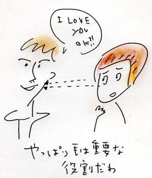 梅雨ですね! この湿気、本当にイヤです! 一歩外に出たら、湿気が体中にまとわりついて おしゃれなんて出来やしないこの時期 一番の悩みはやっぱヘアースタイルでしょう!! この時期になるといつもヘアースタイルが どれほど人間にとって重要かが 身にしみてわかります。 とにかく、決まらないでしょ? チリチリになるし 広がったり、ぺったんこになったり‥‥。 家の中で「よしバッチリ!」と思っても 一歩外に出たらもうクルクルのチリチリ‥‥。 そうすると、5倍はダサくなるのよね。 でもね、髪の毛だけじゃなく 「毛」って本当に人間の印象をすごく変えちゃう 重要なパーツなのです!! 実は最近、まつげパーマにはまったわたし。 まつげパーマなんて自分がやるなんて 思ってもいなかったけど 逆まつげで悩んでいたら、友人が勧めてくれて 腕のいい安心できる人にやってもらったの! すると! 目がかわいいの♪ 自分で言うくらいだから、本当にかわいいの! 「前よりちょっとかわいくなった」 とかそういうことじゃなく 「誰が見てもかわいい」の!! 「初対面でもかわいい」の!! だから、それは 「誰がやってもかわいくなる」ってことでもあるんだけど 絶対にまつげパーマをやってかわいくならない人はいない! 顔がかわいくなるんじゃないよ! 「目」がかわいくなるの! 「目だけ」!! あんなに小さな場所よ!? 髪の毛みたく、どさっとあるようなもんじゃないのよ!? チョロチョロっと生えてる「毛」なのに ちょっとのことで顔の印象が全然ちがうんだから! もう、寝起きからかわいいのよ!! 有り得ないでしょ!? 気に入ったわん♪ そんなこともあって「毛」ってすごいなー!! と最近感心してるわけです! 眉毛もワキ毛もスネ毛もちょっとのお手入れで あか抜けて見えるもんね!! 人の印象は「毛」で決まると言っても 過言じゃないでしょう!! そんな「毛」ですが どうやらお国柄で「毛」に対する美意識にも すいぶんと差があるようです。 聞いた話ですが 日本人女性はわきを脱毛しますよね。 で、下の毛って脱毛しませんよね? (ちょっとわたし赤面!) でも、フランス人女性はわきは生やして 下の毛を脱毛するそうですよ!! (またしてもわたし赤面!) 「下の毛をそのままにしておくなんて有り得ない」 そうです! まじ?? 特にコメントはありませんが そういうことらしいです。 フランスで確認はしていませんが。 でも、もしそうだとしたら「毛」って文化だなーと またまた、「毛」を無視できなくなるわけです。 一本、一本は力はないけど 集まるとすごい威力を発揮しちゃう 「毛」って何かすごいよね!! それに「毛」は人間にとって 大事な部分に生えてるんでしょ? 「毛」に守られているんでしょ? わたしたち! いつも忘れがちだけど、 これは感謝しなくてはいけませんね。 「むだ毛」なんて呼んで、 粗末にしていてはバチがあたりますよ。 「むだ毛処理」なんて言わずに 「大事な毛のお手入れ」って言いましょう!! 「大事な」と付けることがポイントです そういうちょっとした日々の気遣いの積み重ねが あなたの未来を作っているのですから! いや、まじでまじで。 余談ですが、親友がいつも言っていることがあります。 「女は『は』の付く所が大事!」 「はだ」「はら」「は」「はな」だそうです! 本当だ!! そこにわたしは「毛」も加えたいと思います!! 「毛」と「はのつくところ」を意識すれば きっと美しい女性 もしくは男性になれるに違いありません!! 一見無駄に見えるものでも必ず意味があるのです! そういうものを見過ごしていませんか? それは愛を失いかけている証です!! たしかに梅雨のヘアースタイルは決まりません だからこそ「毛」の重要性に気付けるのですよ!! やはり、世の中無駄なことはないと言えるでしょう!! こういう考え方を「気の持ちよう」と言いますが まあ、そういうことです。 同じ梅雨を生きるなら、恨めしいことばかり言わずに 笑って過ごさなきゃ、損でしょ? この梅雨をきっかけに「毛」とわたしたちの いい関係を築いていきましょうね!!