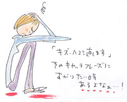 ●●●●●●●●●●●●●●●●●●●●●●●● いかがだったでしょうか、今回の「ほめ道」。 宇宙や恋、ユーミンなどを語りながらも、 けっきょくのところ 「板金屋さんはキズやヘコミをきれいに直す」 としか言っていないあたりがアッパレです。 このあたりの潔さは名人芸の領域です。 さて、次回はなにをほめてくださるのでしょうか? 『ルージュの伝言』を聴きながらお別れです。 イラスト:さとうみどり |