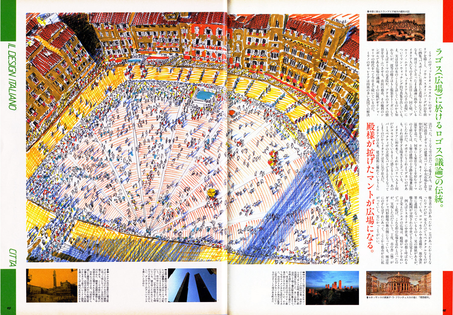 ▲64号のイタリア特集でも堀内さんが大活躍。この絵はシエナの市庁舎前広場。