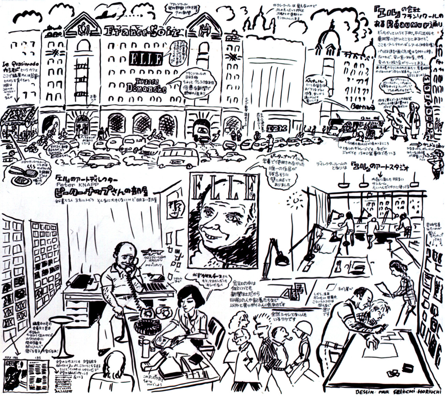 東京ガイドの線画、スパゲッティの絵画的な世界、