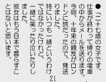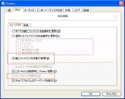 iPodに音楽を入れるときには iTunesを経由させるのですが、 音楽以外のファイルを入れるときには、 iTunesは使いません。 iPodの設定をちょっと変えて、 ハードディスクとしても使えるようにするのです。 ■iPodをハードディスクにも使えるようにする方法 (1)パソコンにiPodを接続する。 (2)iTunesの右下に表示されるiPodマークをクリック。 ![]() (3)「曲とプレイリストを手動で管理」もしくは、 「ディスクとして使用する」のどちらかをクリック。 ![]() これでiPodがハードディスクとしても 使えるようになりました! パソコンの「マイコンピュータ」を開くと、 iPodがハードディスクとして表示されています。 (Macの場合、もっと簡単です。 iPodを接続すると、デスクトップ上に iPodのアイコンが出てくるので、 それをクリックするだけです) これをクリックすると、 ちゃんと「Notes」ってフォルダがあります。 この「Notes」の中にテキストファイルを入れると、 iPodで読むことができるってわけでした! 簡単! 楽勝! あっという間だわ! ・・・・と、思ったのもつかの間、 実は、この直後、わたしは思いっきりつまずきました。 「Notes」に入れたテキストをiPodで読もうとすると、 文字化けしているんです! 簡単にできるはずなのに、なぜ!? どこに原因がっ?! ファイルの形式をテキスト(.txt)から、 ワード(.doc)に変えたり、htmlにしたり、 試行錯誤したものの、文字化けが直りません。 うわー、どうしよう! ・・・・あせりまくって、いろいろ調べたところ、 なんと、iPodで読むテキストファイルは、 4KB(キロバイト)を超えたら表示できないと判明。 これが原因だわっ! iPodに入れたテキストが長すぎたんです。 1B(バイト)は、半角1文字。 2Bで、全角1文字。 4KB以内ってことは、2,000文字以内ってことだ! なーんだ! パソコンでつまずくときって、 たいていすごく些細なことでなんですよね。 さっそく、テキストを2つに分けて、 iPodに入れてみたら、文字化けが直ってました。 うわーん! うれしいよー! 大事なことです。覚えておいてくださいませ。 iPodに入れるテキストは2,000字以内! iPodでテキストを表示させるときには、 iPodのメニューの「エクストラ」の中に、 「メモ」という項目があるので、それを選択します。 すると「Notes」に入れたテキストの一覧が出てきます。 読みたいテキストのタイトルをクリックすればOK! 2,000文字といえば、かなり長い文章ですが、 ほぼ日の記事やデリバリー版は、 多いときには5,000文字を軽く越えます。 毎回、自分で2,000文字以下に分割するのは めんどうくさいなあ・・・・というときには、 文章を2,000字以内に分割してくれるソフトがあります。 ■テキストをiPod用に分割してくれるソフト ●TexDiv(Windows専用) ●TextMemo for iPod(Windows専用) ●TransNotes for iPod 4.6(Mac専用) ところで、上の方法でiPodでテキストを表示すると、 小さな文字で横書きになっています。 視力が1.5のわたしも、ちょっと読みにくいなあと 思うことがよくあります。 iPod photoをお持ちの方にオススメなのが 「T-Time5.5」。 パソコン、iPod photo、ケータイ、デジカメなど、 画像表示ができる液晶がついているアイテムを、 電子本に変身させる役立ちソフトです。 ■好みの文字サイズ&縦組みで読めるソフト (iPod photo用) ●T-Time5.5 文字を拡大したり、ページサイズを変更したり、 フォント、行間、縦組・横組などを自分で変えられ、 読みやすく調整できるのが特徴。 長編小説もiPod photo用に瞬時に変換してくれます。 ![]() たとえば、デリバリー版をタテ組みにして 文字の形やサイズ、行間を調整すると 通常よりも読みやすいのです。 バックの色も変えられるので、目にもやさしそうです。 iPod photoをお使いの方は、ぜひ一度、お試しください! 今回はテキストをiPodに入れるやり方を ご紹介しましたが、 次回は、「音のファイルをiPodに入れる方法」を、 役立ちソフトや小技と一緒に、ご紹介しますねー。 iTunesで楽曲を購入できるようになる 「iTunesミュージックストアー」が 日本に上陸するという噂もあるし、 持っているiPodはさらに使えるヤツになりそうですねー。 こんな投稿、 がんがん募集いたします!