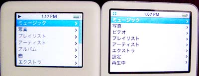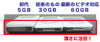 【今までのiPodとは、ここが違う!】 ビデオiPodの箱を開けて、 まずびっくりしたことは、 ★画面が大きい! ★とっても薄い! ってことでした。 ![]() ▲左が今までのiPod、右がビデオiPod。 画面が横長で大きいものだから、 一瞬、iPodが大きくなった? と錯覚したくらい。 比べてみたら、今までのiPodと タテとヨコの長さは変わりませんでした。 そんな錯覚をするくらい、 画面が大きくなったってことですね。 ものさしではかったところ、 画面は従来のiPodの1.2倍以上の大きさ。 厚さは60GBのビデオiPodで1.2センチくらいで、 私が使っている30GBのiPodの倍の容量がありながら、 それよりも薄いんです。 4年前に発売された初代iPod(5GB)に比べれば、 容量は12倍(!)もあるのに厚さは約40%ダウンですよ! ひょえぇ〜! 技術革新のスピードってすごいですね。 ![]() また、ビデオを観る機能がついたためか、 画面は大きくなったばかりではなく、 ★画面が明るく、はっきりくっきり! ★文字も太くなって読みやすい! となってます。画面がすっごくきれいです。 画面と文字がはっきりして見やすいと、 とても気持ちがいいですね。 ![]() ▲左が今までのiPod、右がビデオiPod。 余談ですが、過去発売された数々のiPodの中で、 個人的に、最もかっこいいと思うデザインは、 だんぜん、初代iPod! 白いiPodの表面を透明な板がおおっていて、 丸みが少ない、シャープな形をしてました。 そこから醸し出される 透明感のあるスマートなたたずまいが、 気品があって美しかったのでした。 今回、ビデオiPodでは、透明な板が復活! 存在そのものが美しくて、 持っていて気持ちいいです。 【iPodでビデオを観るのは新鮮な体験】 さて、肝心のビデオについての感想です。 ビデオiPodは、音楽を聴く機能はいままでと同様で、 ビデオの再生機能がプラスされたものです。 iTunesミュージックストアで、 ミュージックビデオやショートムービーを物色して、 ビデオ作品をいくつかゲット(1本300円でした)。 好きなアーティストの作品が、 曲だけだと150円、映像つきで300円。 ‥‥ってことは、曲に150円プラスすれば、 映像がついてくるわけです。 視聴するだけのストリーミングと違い、 ビデオ作品を自分のパソコン&iPodに保存できます。 この値段で自分の物にできるなら、かなりお得感あり! また、購入したビデオ作品は、 通常通り音楽だけの再生も可能。 さらに、iPodとテレビのモニターをケーブルでつなげば、 iPodに取り込んだビデオをテレビで観ることができます。 ビデオ作品を、まず、iTunesで観てみました。 パソコンで動画を観るのは、 もう当たり前になっているので、 取り立てて感動はないよ、 って言われちゃうかもしれません。 が、しかし! iPodで観たら、これが新鮮なんですよー! とっても美しくて、ブラボーです! 実際にビデオiPodを使ってみるまでは、 「外で音楽は聴くけど、映像は見ないよなあ」 「ケータイにテレビ機能ついてても使わないし」 などと、私は動画を持ち歩くことに、 けっこうシビアな感想を持っていたのですが、 iPodはイケるかも! まず、片手で持てる手のひらサイズというのがグー。 両手で持つサイズのもので、ビデオを観るとなると、 電車の中とかで目立っちゃって気恥ずかしいかも。 でも、手のひらサイズなら、さりげなく、 曲目チェックをするかのように、 気軽に観られるじゃないですか。 で、手のひらの中に、好きなアーティストがいたり、 好きなショートムービーが収まっているわけです。 このうれしさときたら! 繰り返しみたいシーンや表情を 巻き戻したり止めたりしてじっくり観たり、 友達にムービーを見せて自慢したりして。 ところで、iTunes&iPodのビデオでは、 自分で撮影したホームビデオを 取り込んで再生することもできるそうなので、 おじいちゃんおばあちゃんの家のテレビに iPodをつなげて、孫の運動会ビデオを見せるとか、 いろいろな使い方ができそう。 なんでもアメリカではビデオポッドキャストというのが、 ビデオiPodの登場とともに広まりつつあるそうです。 ポッドキャスティングといえば、 音声メインのいわゆるネットラジオだったわけですが、 つまり、ネットテレビをだれでも配信できる時代が来た! ってことですよね。 ビデオiPod、いろいろ可能性がありそうです。 探してみて、また、ここでご紹介したいと思います。 ポッドキャストや、 ビデオポッドキャストに関する投稿も大募集です。 興味のある方、お使いの方、ぜひ、教えてくださいませ。 その他の投稿もお待ちしております! こんな投稿、 がんがん募集いたします!