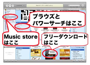 もちろん、できます! たとえば、iTunesミュージックストアという アップルのオンラインミュージックショップが あります!(※2) iTunesミュージックストアでは 現在、約100万曲以上の曲が販売されています(※3)。 1曲あたり150〜200円。 ミュージックビデオやアートビデオなどの ビデオ作品は1本300円です。 iTunesミュージックストアでしか買えない オリジナル曲もあるし、 「あの曲を今すぐ聴きたい!」というときや、 昔懐かしい曲を1曲だけ購入したいときに便利です。 ※3 現在、iTunesミュージックストアに参加して、 曲を提供しているレコード会社は、 エイベックス、キングレコード、コロムビア、 東芝EMI、ビーイング・ギザグループ、 ユニバーサルなど。 SMEやポニーキャニオンは参加していません。 iTunesミュージックストアに行くには、 iTunesからアクセスする必要があります。 インターネットエクスプローラーなどの ブラウザからはアクセスできないので注意。 iTunesをパソコンにインストールして立ち上げ、 左側の「Music Store」をクリックします。 するとiTunesのメイン画面に iTunesミュージックストアが出てきます。 ![]() メイン画面には新作のアルバムやシングル、 iTunesミュージックストア限定曲、 「フリーダウンロード 今週のシングル」という 無料ダウンロードの曲、 「スタッフのお気に入り」という オススメ曲などが表示されています。 曲を探すときには、2つの方法があります。 ひとつは、 ミュージックストアの左側にあるメニューの 「パワーサーチ」をクリックして、 曲名やアーティスト名、アルバム名などで検索する方法、 もうひとつは、「ブラウズ」をクリックして、 「J-Pop」「R&B/ソウル」「クラシック」 など30以上のジャンルから、アーティストを選び、 探していく方法です。 「ブラウズ」で探すと、iTunesミュージックストアで 取り扱われているアーティストを一望できるので、 どんなアーティストや曲が販売されているか 知りたい方は一度お試しください。 ![]() また、各曲の曲名をクリックすると30秒ほど、 無料で試聴することができます。 探している曲の曲名がわからないときや、 聴いたことのない曲が、自分の趣味に合うかどうか、 ちょっとの間ですが確認できるので便利です。 iTunesミュージックストアで、 欲しい曲が見つかり、曲を購入する場合、 初めてお使いになる方は登録が必要です。 「曲を購入」のボタンをクリックして、 出てきた画面の指示に従って進んでくださいね。 ちなみに、支払い方法には、 クレジットカードと、 家電店やアップルストア、アマゾンドットコム、 セブンイレブンなどで販売されている 「iTunes Music プリペイドカード」などがあります。 ※2 iTunesミュージックストアで販売されている曲は データ形式がAAC形式(※4)のため、 「RealPlayer10」などのプレイヤーや、 一部の携帯電話を除いては、 iPod以外のプレイヤーで聴くことができないので、 iPod以外のプレイヤーをお持ちの方は要注意です。 ※4 AACとは音声圧縮方式のひとつ。 MP3よりも1.4倍ほど圧縮効率が高く、 音質はほぼ同じ。 さて、最近はどのiPodを買えばいいか 迷われている方からの投稿が多いので、 ぜひ、iPod購入の成功談・失敗談など 教えてくださるとありがたいです! また、他のiPodにまつわるエピソードも お待ちしております。 こんな投稿、 がんがん募集いたします!
