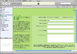 ※自分のプレイリストをiTunesミュージックストアで まとめて購入して、プレゼントすることもできます。 iTunesのプレイリストをクリックすると 右側に矢印が出てきます。 これをクリックすると、 ポップアップウインドウが出てくるので、 「プレイリストをプレゼント」をクリックします。 ※プレイリストの曲がiTunesミュージックストアで 販売されていない場合は、 お友達に購入してプレゼントすることができません。 iTunesミュージックストアは、 最初の登録さえできてしまえば、 あとはカンタンです。 まだ使ったことのない方は、 ぜひお試しください! 次回はiPodの選び方や、 困ったことなどの特集です。 また、iPodにまつわるエピソードも 引き続き募集中です! こんな投稿、 がんがん募集いたします!