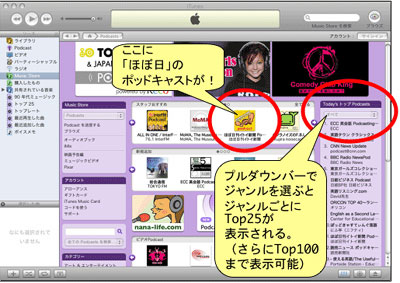 iTunesミュージックストアの 「Podcast」のコーナーでは語学学習系の番組が大人気。 「Today'sトップPodcasts」のトップ100を見ると なんと4分の1が英語、中国語、韓国語などの 語学学習系の番組です アルクや大手英会話学校が提供している 専門番組も多いのですが、 CNN、Newsweek、BBC、ディスカバリーなど 海外のニュース局の番組や、 個人の方が発信している番組も充実していて、 生の外国語に触れることができ 聴いているだけでリスニング力がつきそうです。 語学学習系の人気番組だけチェックしたいときは、 「Today'sトップPodcasts」の見出しの下の プルダウンバーを使うと便利です。 アート・エンターテインメント、コメディ、科学、 教育、ビジネス、映画・テレビ、ミュージックなど、 各ジャンル別の「Today'sトップ100」の番組が リストアップされます。 語学学習系は「教育」を選んでください。 ![]() ところで、ポッドキャストの聞き方について こんなご質問をいただきました。