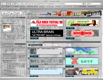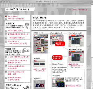 「mF247」に登録されているアーティストは 現在650組弱。 ポップス、ロック、ヒップホップ、ジャズ、 クラシック、童謡、オーディオブック、沖縄‥‥と、 17にもおよぶ幅広いジャンルを網羅しています。 提供されているたくさんの楽曲の中から、 好きな曲を見つけるポイントは、 まず「総合ジャンル」のページの 「リアルタイムランキング」や ページの右端にある「nJ(ネット・ジョッキー)」と呼ばれる 選曲者オススメの「nJ新着レコメンド」 などからチェックしましょう。 ![]() ▲「総合ジャンル」のページ。 ページの中央に「リアルタイムランキング」が。 右下の方にnJ(ネット・ジョッキー)オススメの 「nJ新着レコメンド」があります。 そして「miXtapes(ミックステープ)」 というユニークなコーナーを 活用するのがオススメです。 ![]() ▲「miXtapes」のページ。 この「miXtapes」は、その名前のとおり、 「mF247」で提供されている曲から、 好きな曲をピックアップして、 仮想のカセットテープをWeb上で作成できるサービス。 ユーザー登録している人はだれでも この仮想カセットテープを作って 公開することができます。 また、ユーザー登録しているいないに関わらず、 だれでも自由に聴くことができます。 公開されている「miXtapes」には、 たとえば、FUJI ROCK FESTIVALに 参加したアーティストの曲を集めた 「FUJI ROCK FES.'06」や、 「車で聴く音楽」「ロック三昧」などがあり、 作った人が思い思いのテーマで、 「mF247」の曲を集めてくれているので、 好みの曲を見つけやすくなっています。 楽曲のダウンロード方法などの 「mF247」の使い方については、 「mF247早わかりガイド」のページで 「初級者編」「中級者編」「上級者編」と3段階に分けて、 とってもくわしく紹介されているので、 ご参照ください。 ![]() ▲「mF247早わかりガイド」。 最後に私がオススメの10アーティストを ご紹介いたします! 「mF247」からダウンロードしてみたいけど、 どのアーティストにするか迷ったときは、 参考にしてくださいね。 ■ムーンライダーズ 「月の酒場」 ■カーネーション 「ANGEL」「Rock City」 ■忌野清志郎Little Screaming Revue 「俺がロックン・ロール」 ■喜納昌吉 「アース・スピリット」「花(すべての人の心に花を)」 「ハイサイおじさん」 ■首里フジコ 「ふじの山」「フジサン」「国頭サバクイ」 ■成底ゆう子 「真っ赤なデイゴの咲く小径」など。 ■りんけんバンド 「十日越しぬ夜雨(リミックス)」 ■フラワーカンパニーズ 「はじまりのシーン」「東京タワー」 「真冬の盆踊り」など。 ■篠原美也子 「ひとり (Live Version)」 ■大江千里 「家庭菜園」「きみはサンタに恋してる」 さて、引き続き、 iPodにまつわるエピソードやご質問を お待ちしております。 よろしくお願いします! こんな投稿、 がんがん募集いたします!
