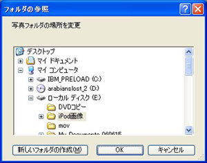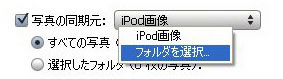 iPodに連続写真や連続したイラストの画像を入れて、 ホイールを高速でくるくる回して表示すると、 パラパラマンガを見るようでおもしろいです。 下記でご紹介した2つのサイトでは、 連続写真やアニメーション画像を提供しているので、 お好みの作品が見つかったら、ダウンロードして iPodに入れて、おためしくださいねー。 ■iPod scrubs. Animations for your iPod Photo このサイトの「Gallery」では、 富士山にかかる雲がどんどん変化する風景や、 走る猫のアニメーション、iPodのCMなど 50以上の連続写真やアニメーションの作品を 紹介しています。 ■デジタル台風 国立情報学研究所の台風データベースのサイトです。 過去25年分の台風の雲の動きをiPodで閲覧できるよう、 iPod用の連続写真に加工して提供しています。 さて、iPodに画像を入れる方法は、 #0031 iPodをじょうずに使いこなすワザ アルバムアートワークや写真を楽しむ で以前特集しました。 iTunes7になってから少し変わっているので、 あらためてiTunes7を使った方法をご紹介します。 (1)あらかじめ、iPodに入れる画像のための フォルダを作り、入れておきます。 「マイ ピクチャ」など、パソコンにもともとある 画像用のフォルダをiPod用にしたいときは、 そのまま指定してもオッケーです。 iPodに転送したい画像をそのフォルダに入れ、ます。 このとき、 iPodの空き容量が足りているかどうかを ご確認ください。 (2)iTunesにiPodを接続し、 左のナビゲーションでiPodを選択して、 iPodの管理画面を表示します。 ![]() ▲これがiPodの管理画面です。 (3)iPodの管理画面で「写真」という項目を選択。 「写真の同期元」にチェックを入れて、 プルダウン項目で「フォルダを選択」を選び、 iPodに転送したい画像が入っている フォルダを選択します。 ![]() ▲「フォルダを選択」を選びます。 ![]() ▲すると、パソコン上のフォルダを指定する画面が出てきます。 iPodに入れる画像が入っているフォルダを指定します。 (私は自分がわかりやすいようにフォルダ名を 「iPod画像」という名前にしています。) フォルダを指定した後で、 iTunesとiPodを同期させてください。これで完了です。 なお、指定したフォルダの中に、さらにフォルダを作って、 テーマやジャンル別に画像を整理することもできます。 その場合、iPodに転送するときに、 「すべての写真」を転送することもできますし、 「選択したフォルダ」を選んで転送することもできます。 ところで、iPodに入れた画像について こんなご質問をいただいています。