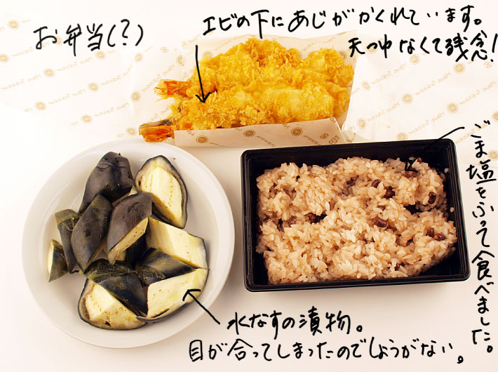 てんぷらは暖かいほうがいいですね、 やっぱり天つゆがないと! 水ナスは期待通り、この時期は水ナスだよなー。 |