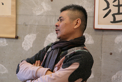 | 日比野 | それに、僕はいろんな人たちに 会う機会が多い環境だったからだと思います。 美術の中でも、デザインという分野は、 工芸とか彫刻に比べると いろんな領域の人と会う可能性が あるほうだと思います。 それでもやっぱり、 美術という分野であるということは、 しかたがない。 |