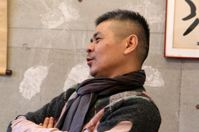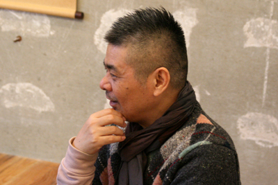| 日比野 | そのおかげで、ぼくが20代で出たころは、 なんだかウェルカムな感じだったんですよ。 糸井さんたちの世代の人たちは、みんな 新しい若いやつが来たぞ、 これはおもしろい、って言ってくれた。 こいつ日比野って言うんだよ、って あちこち連れ回されて、紹介されて。 |