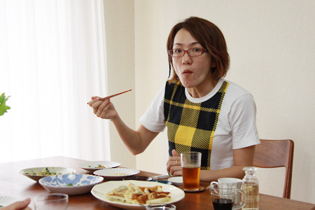 | 糸井 | はあい。 (黒酢を皿にとり、餃子をちょっとつけ、 そのままパクリ) ‥‥おいしいんとちゃうーん! (ふと冷静になって) 別の国のことばだけだって、 いいなあできてるなあって思えるっていうことについては あの映画観てる最中でも考えてたんだけど、 監督が確信があったんでしょうね、きっとね。 (そして突然大声で) おーいしーーーーーっ! |