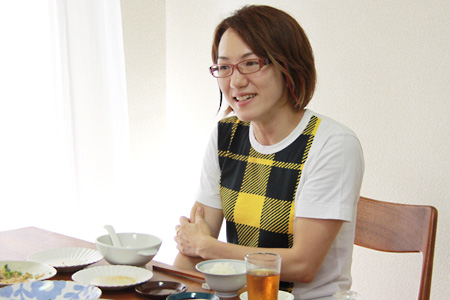 | 荻上 | 今回も、前回もそうですけど、 奈美さんからアイデアをいただいたことが たくさんあって、 餃子の打ち合わせをしたときに 奈美さんが皮からつくっていて、 あ、これは美しい! おもしろい! と思って、 そこからつくっていただこうと思ったり。 |