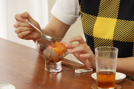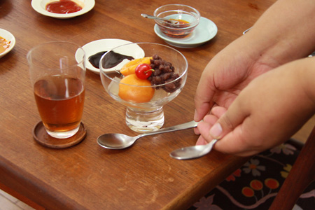 | 糸井 | (さっそく口に運ぶ) あ、寒天にミント入れてる? |