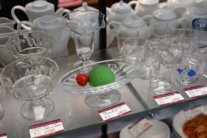 | ── | ブランドものの食器やカトラリーが とても安く入手できるようです。 レストラン用の白い食器もたくさん。 |